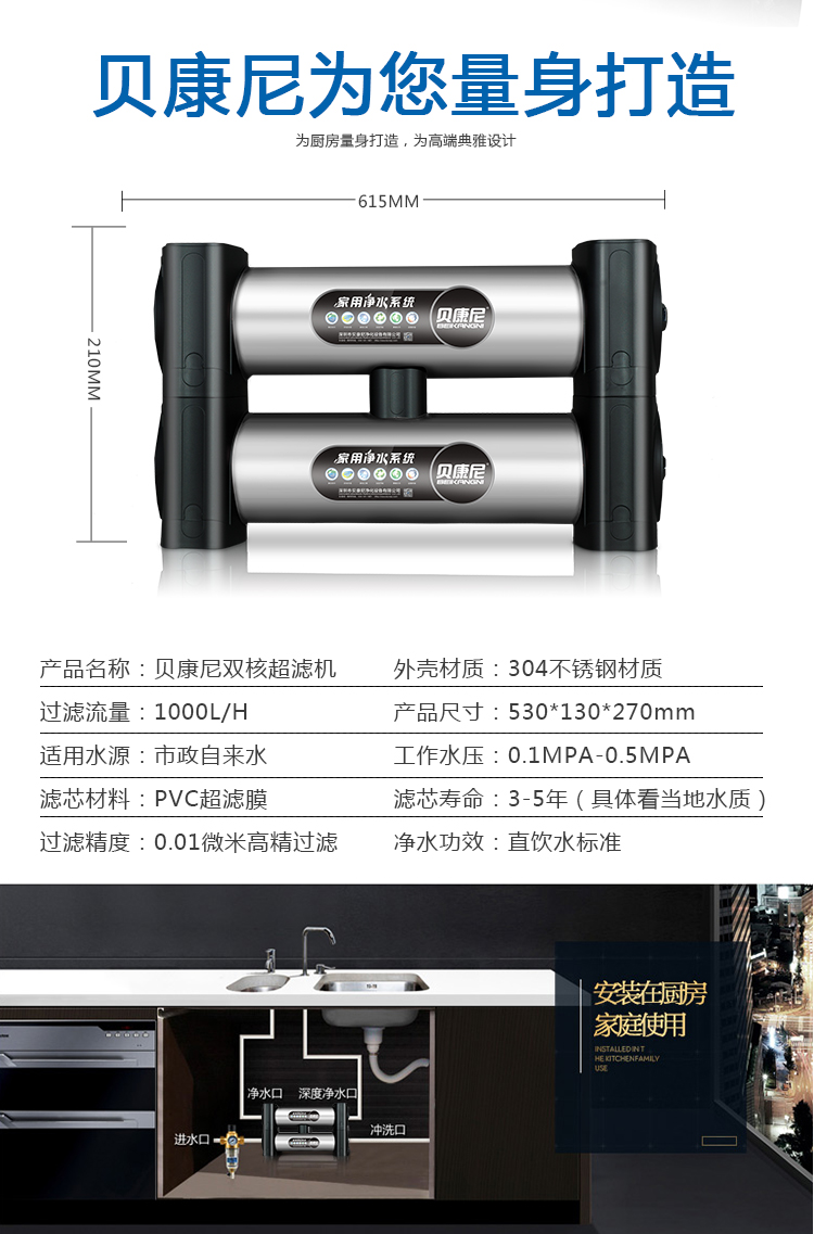产品名称:双核心净水系统 产品型号:BCN-UF1000-S1
