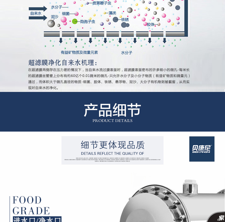 过滤工艺:中空纤维超滤膜 机身材质:SUS304不锈钢
