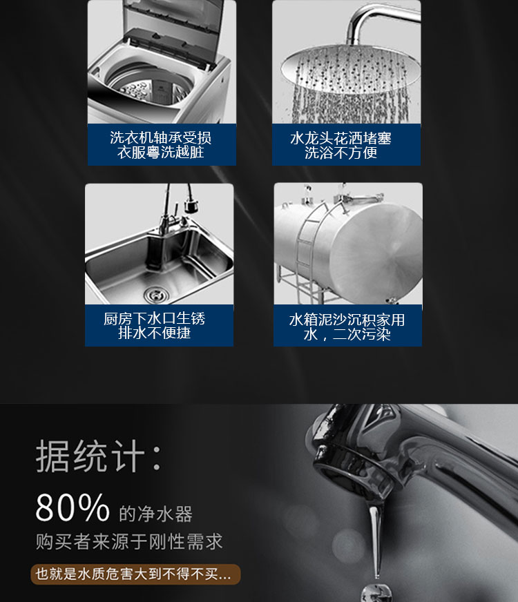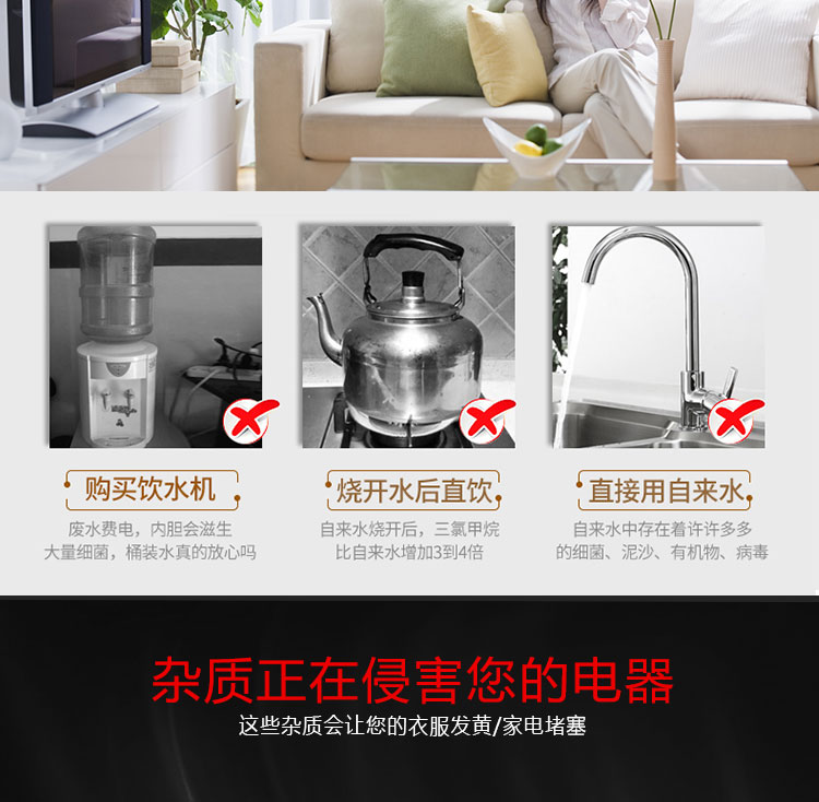 净水流量:1000L/H(具体水质水压不同略有差异)