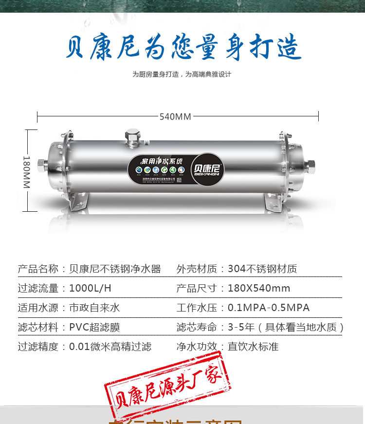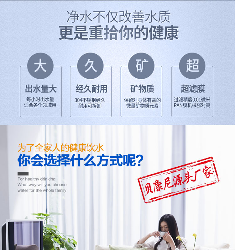 产品名称:贝康尼厨房超滤机 产品型号:BCN-UF1000-C1